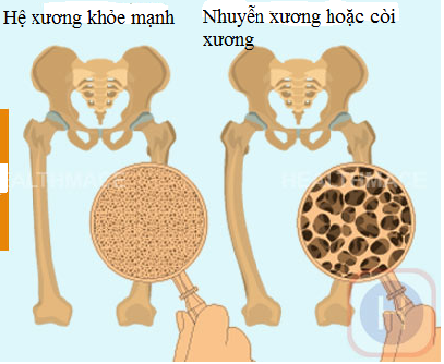 Hình 1. Hệ xương khỏe mạnh và hệ xương bị nhuyễn xương hoặc còi xương.
