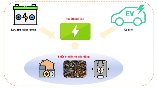 Hình 1. Minh họa về nguồn thải pin lithium-ion (LIB) đã qua sử dụng.