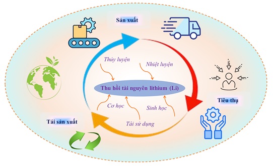 Ngày nay, việc phát triển các giải pháp tái chế hiệu quả và thân thiện môi trường đối với pin lithium đã qua sử dụng là điều cần thiết, vì nó có thể thúc đẩy quá trình khép kín của nguồn tài nguyên lithium từ sản xuất - tiêu thụ - tái sản xuất (hình 2). Gần đây, việc tái chế pin đã qua sử dụng đã được nghiên cứu, với các phương pháp như thủy luyện, nhiệt luyện, cơ học, sinh học hay tái sử dụng trực tiếp được triển khai ở quy mô công nghiệp và thương mại.