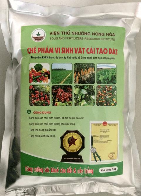 Chế phẩm vi sinh vật cải tạo đất có thành phần chứa vi sinh vật có khả năng cố định nitơ, phân giải phốt phát khó tan, hòa tan kali và sinh chất giữ ẩm polysaccarit. Tác dụng của chế phẩm này là cung cấp các chất dinh dưỡng, cải tạo độ phì của đất, tăng khả năng giữ ẩm đất, giúp tiết kiệm 10-15% phân đạm urê, lân, kali. Điều đặc biệt là chế phẩm vi sinh vật cải tạo đất này không gây ảnh hưởng tiêu cực đến sức khỏe con người, vật nuôi, cây trồng như thuốc bảo vệ thực vật từ hóa chất. Ngược lại còn góp phần cân bằng hệ sinh thái trong môi trường đất, tăng độ phì nhiêu của đất. Khi sử dụng chế phẩm này, cây trồng hấp thu chất dinh dưỡng dễ dàng hơn, giúp tăng năng suất và chất lượng nông sản.
